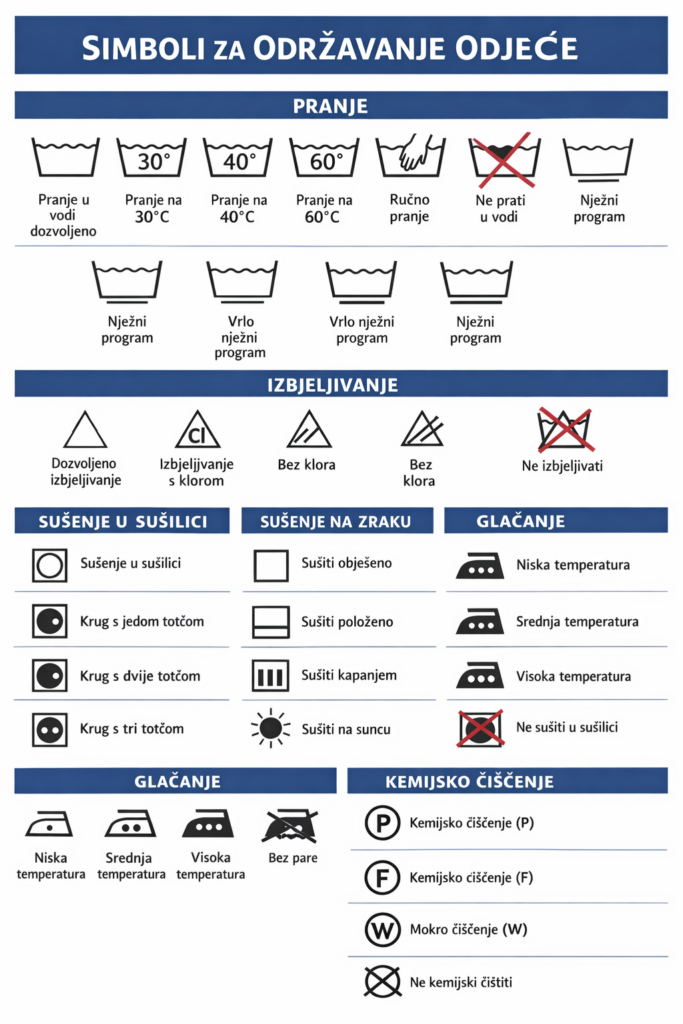 Detaljna tablica: Simboli na etiketama za pranje